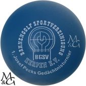 die erste, aus fünf Männern bestehende, deutsche Reisegruppe gewesen sein, die mit dem primären Ziel, Minigolf zu spielen, nach Thailand gereist ist. Normalerweise ist es ja die gute thailändische Küche, die einen dorthin lockt 😊 Aber jede/r, die/der sich für Minigolf interessiert, weiß: Wo Team Germany hinkommt, werden Prioritäten gesetzt und die heißen: Gewinnen! So auch in diesem Fall und aus diesem Grund gibt es jetzt diesen Ball! Ich würde ihn als einen langsamen dicken Röhrenball bezeichnen, der sich von den meisten anderen Bällen dieser Art durch die geringere Härte abhebt, die sich auch noch etwas nach unten ansiedelt, da man den Ball an den meisten in Frage kommenden Röhren gewärmt spielen sollte. Dann kann er aber durchaus Vorteil gegenüber anderen dicken Bällen entwickeln! Weitere Einsatzbereiche sehe ich bei Bandenschlägen auf Beton, z.B. an Bahn 2, 12, 14 und 17 sowie auch an Hindernisbahnen wie Bahn 3, 9 oder 16.