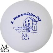 Ausgabe wurde es sogar auf zwei Tage ausgeweitet, um alle Interessenten spielen lassen zu können. Wunderbar, dass es sowas in der heutigen Zeit mit Turnieren, die regelmäßig über Teilnehmerschwund klagen, noch gibt! Und: Zu jedem Wassermühlen-Cup gibt es auch einen Ball. Die Osnabrücker legen Wert darauf, dass dies in der Regel Bälle sind, die sich etwas vom Einheitsbrei absetzen. Was für ein Glück, dass sie einen guten Kontakt zu M&G pflegen 😊 Den 5. Wassermühlen-Cup Ball würde ich als einen schönen, langsamen Brückenball (einige cm langsamer und minimal weicher als ein alter Maier Classic 3) beschreiben. Man könnte sagen: Maier Classic 2,75. Bei 3D wäre es ein 372, den es so ja nicht gibt. Durch die etwas vom typischen Brückenball abweichenden Werte, erschließen sich aber auch weitere Einsatzgebiete, wie z.B. auf Filzanlagen neuer Bauart Örkel oder Kackloch oder auf Abt.2 einige Schleifen oder Hochplateaus. Auf der Anlage in Osnabrück, auf der der Wassermühlen-Cuo stattfindet, hat sich übrigens herausgestellt, dass der Ball auch sehr gut an der Beton-9 funktioniert. Dies dürfte besonders Teilnehmer der Senioren DM interessieren.